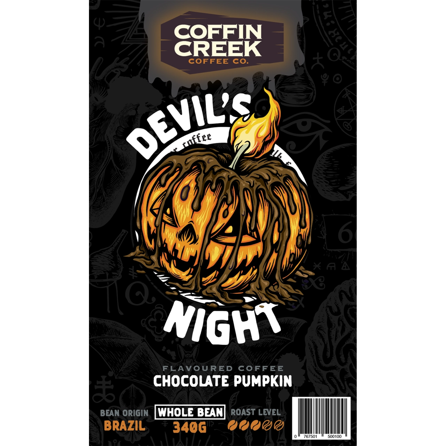 On Devil’s Night, darkness stirs up something wickedly delicious—Chocolate Pumpkin! This haunting brew combines the rich, velvety sweetness of chocolate with the warm, spiced embrace of pumpkin. It's a devilishly delightful flavour that will tempt your taste buds into the shadows of indulgence. Perfect for those who love a bold twist on classic pumpkin spice, Devil’s Night Chocolate Pumpkin is a brew that’s as sinful as it is irresistible. One sip, and you’ll be hooked!