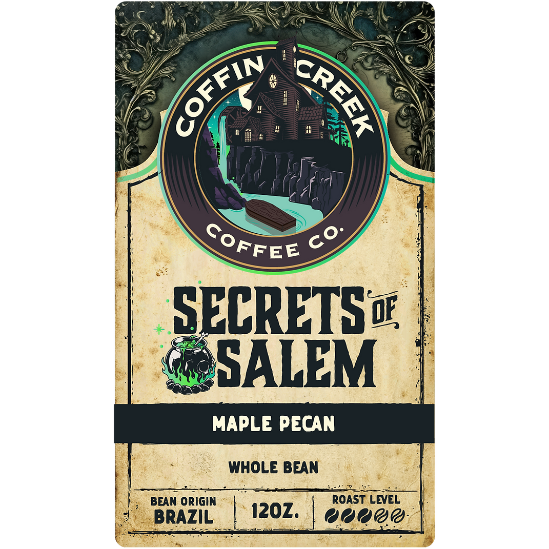 Secrets of Salem brews up a bewitching blend of maple and pecan flavours that will cast a spell on your senses. This smooth, nutty coffee combines the rich sweetness of maple syrup with the toasty warmth of pecans, delivering an irresistible taste of autumn magic. Perfect for cozy mornings or crisp evenings, Secrets of Salem invites you to uncover the delicious mystery behind each enchanting sip.