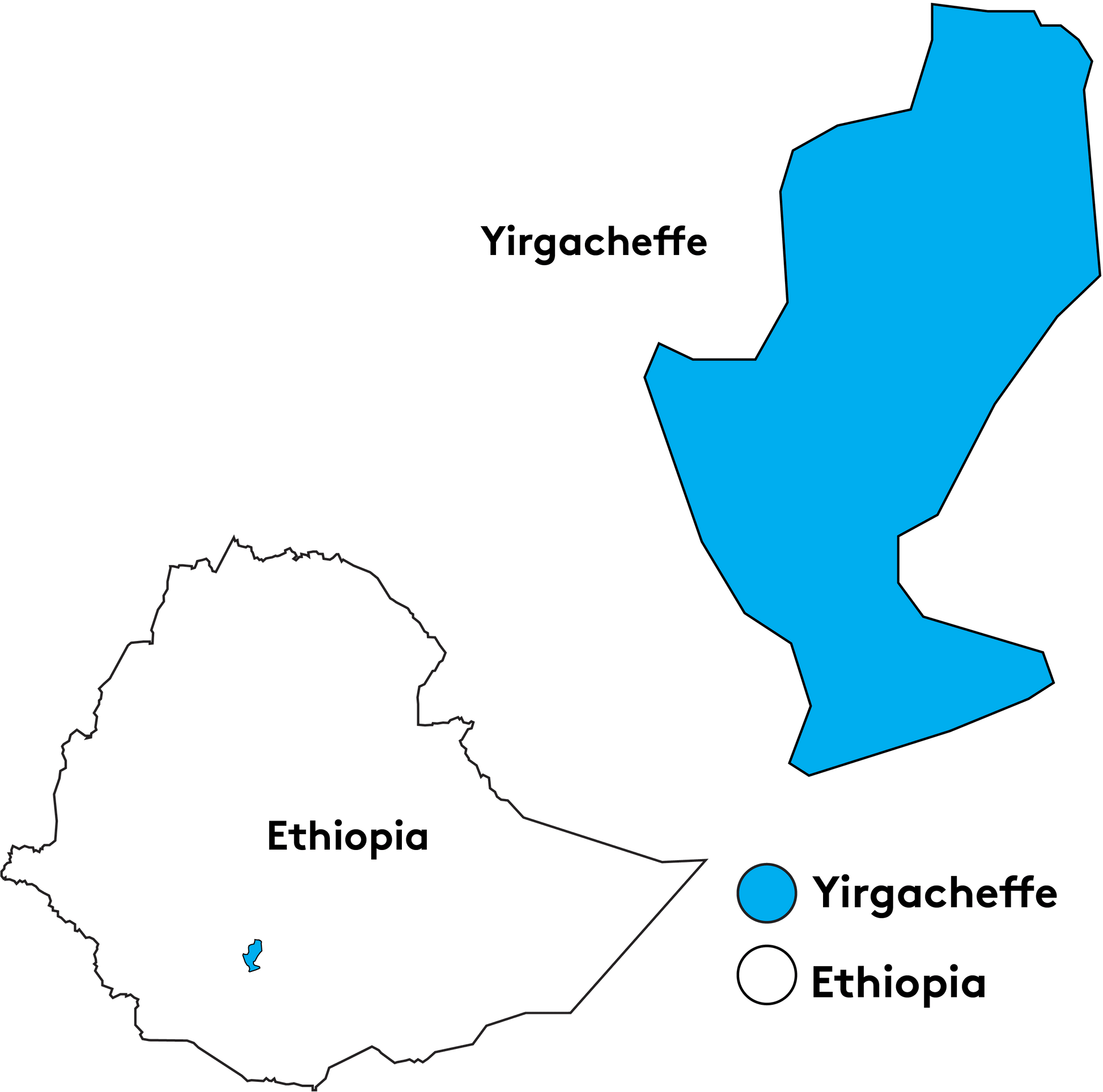 A stellar heirloom bean from Ethiopia’s Gedeo Zone in the Gedeb woreda (district). With elevations ranging between 1,700 and 2,200 m above sea level and an average temperature of 15.5°C and 17.8°C, Yirgacheffe produces some exceptionally bright and floral coffee